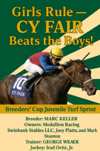 Cy Fair – 2025 Breeder’s Cup Juvenile Turf Sprint Winner!